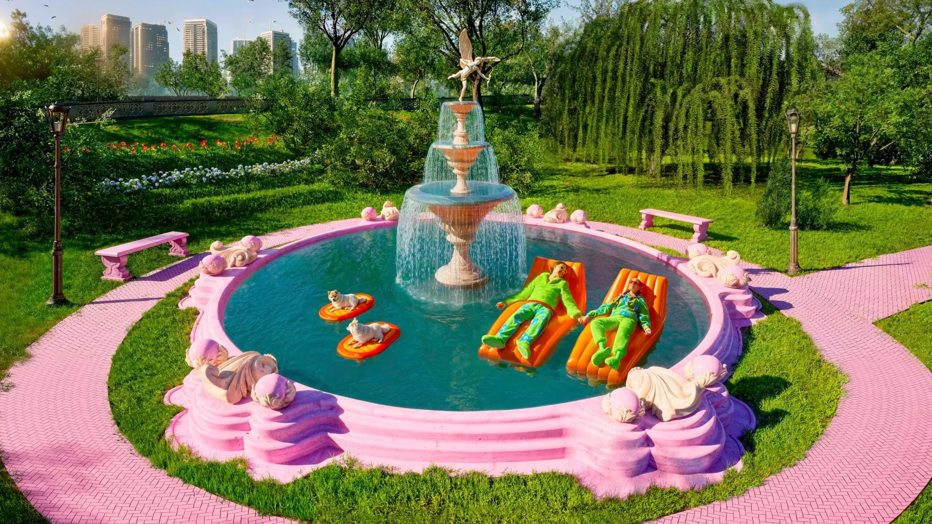 To awake his audience from media numbness he uses visual theatrics and an unusual blend of vibrant colors.